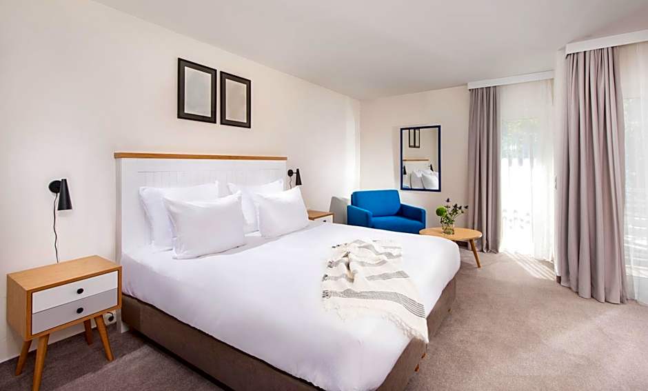 A seating area with a flat-screen TV, a desk, a balcony and a private bathroom are featured in this spacious double room.